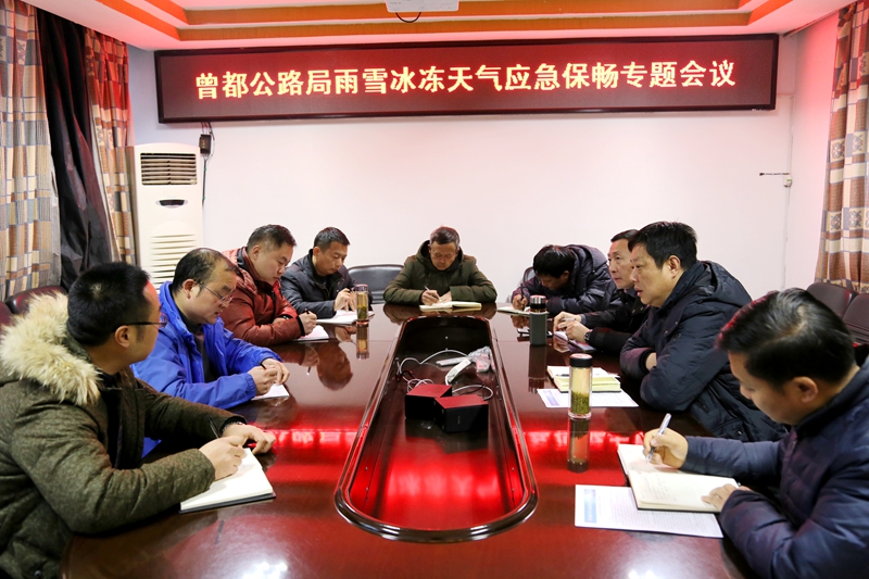 1月3日,我市出现大范围雨雪降温天气。上午9时许,曾都交通公路部门迅速召开冰冻雨雪天气保畅专题会议,启动应急预案,确保雨雪天气公路安全畅通。