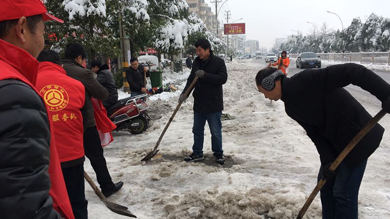志愿者们自带铁锹,不顾寒风刺骨,将冰雪覆盖的路面清扫的干干净净,确保了道路的通畅和安全,为居民及车辆出行提供了方便,消除了安全隐患。并组织沿线的门店商户们,开展各自清扫活动,此次活动弘扬了"奉献、友爱、互助、进步"的志愿精神,也展现了交通人积极向上向善的精神风貌,弘扬了社会正能量。