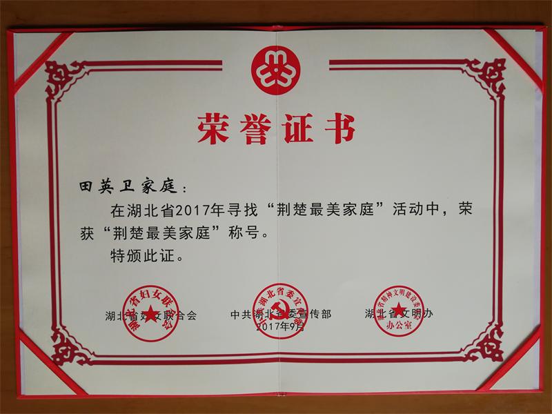 “家庭是船,事业是帆;船稳帆正,帆满船顺!”市交通运输局直属机关党委委员、审计科科长田英卫对家庭的理解充满诗意。田英卫拥有一个温馨的五口之家,一家人恪守“有国才有家,家和梦自圆”的家风家训,用平凡生活中的点点滴滴,传承中华民族“爱国明礼、孝老爱亲、敬业尽责、科学教子”等优良传统,被省妇联表彰为2017年“荆楚最美家庭”。